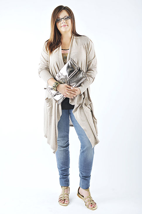 Dnes je hodně moderní všemožné vrstvení, ale pro ženy s bujnějšími vnadami je to trochu riskantní. Výrazné vrstvení jim většinou moc nesluší, i když jednoduchým tričkem a splývavým cardiganem nic nezkazíte, obzvlášť pokud chcete také schovat pár kilo navíc. „Navíc cardigany opticky prodlužují. Ale nic se nemá přehánět, takže vždy myslete na vyvážený vzhled celého outfitu a postavy. Pokud volíte volnější top či cardigan, oblečte si užší kalhoty či sukni," dodává Veronika Metzová.